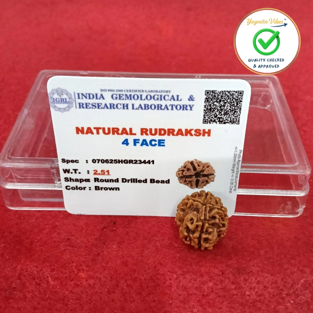 The 4 Face Rudraksha is a powerful spiritual bead known for enhancing intelligence, creativity, and communication skills. It helps improve memory, clarity of thought, and self-expression.